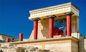 This morning, explore the archeological site of Knossos, the ceremonial and political center of the Minoan civilization on Crete, just five kilometers from Heraklion city center. The palace at Knossos was an intricate collection of over 1,000 interlocking rooms, used as a religious and administrative center and for workshops for artisans and food processing. The ruins have primarily been excavated, and many of them are colorfully painted and restored.