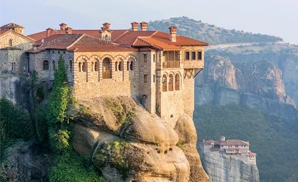 This morning, depart south for Kalambaka and visit one of the most spectacular Monasteries of Meteora, perched upon the summits of some steep and isolated rocky pinnacles, which rise above the almost flat valley of the Pinios River, 5 miles beyond Kalambaka. The monastic history of Meteora dates back to the 11th century A.D., when the Greek Orthodox monks constructed inaccessible eagle's nests in the crannies of these rocks, four of which are still occupied. C